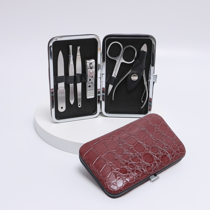 Набор маникюрный «Рептилия», 8 предметов, в футляре, цвет коричневый