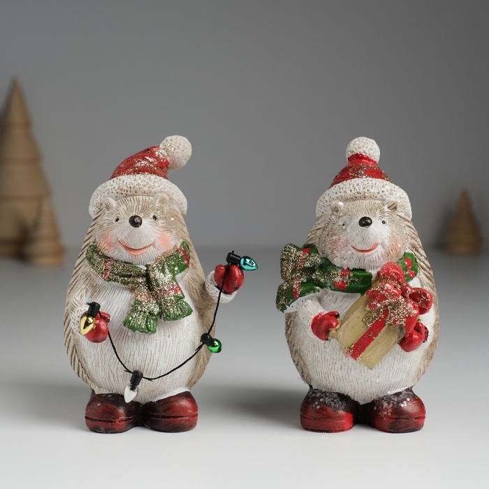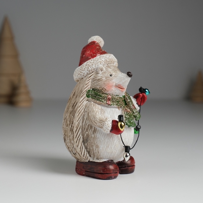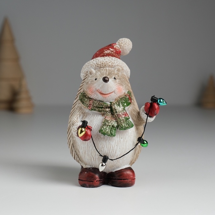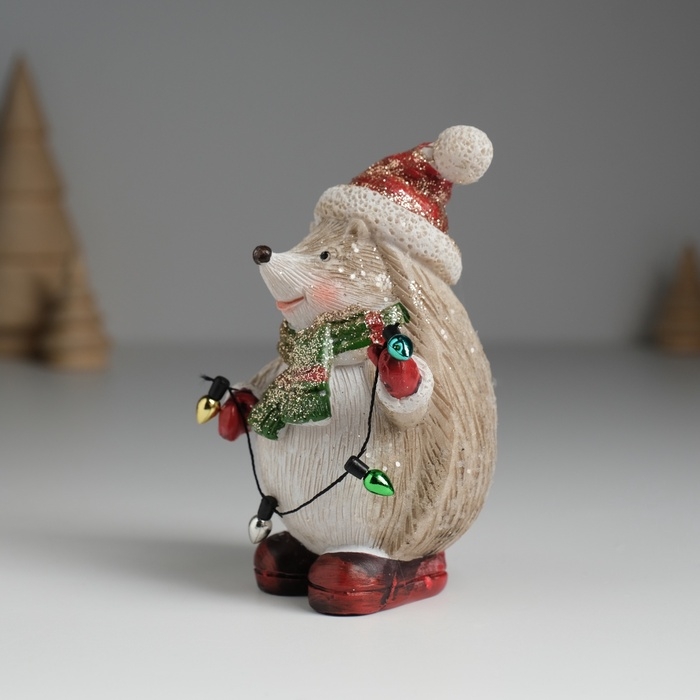 Сувенир полистоун "Ёжик в красном колпаке и зелёном шарфике" МИКС 6,5х6,5х10,2 см