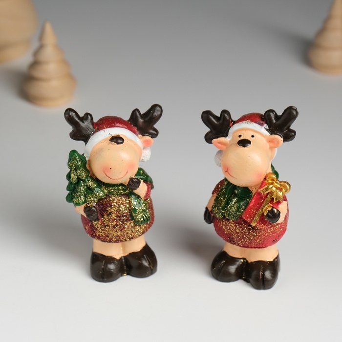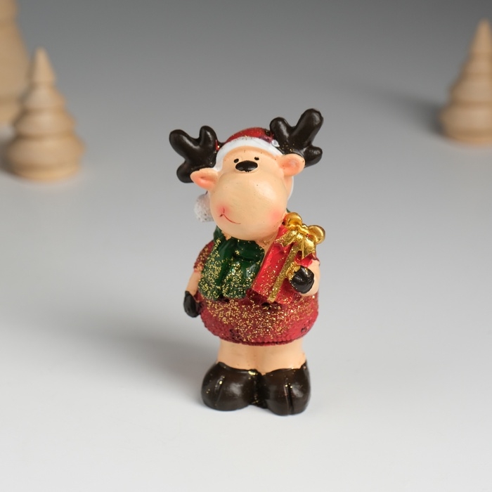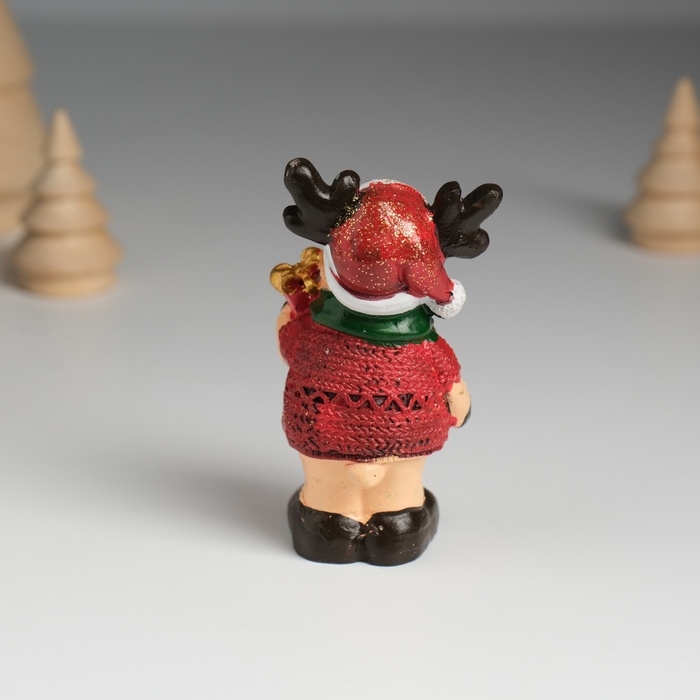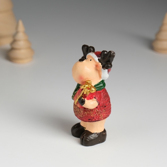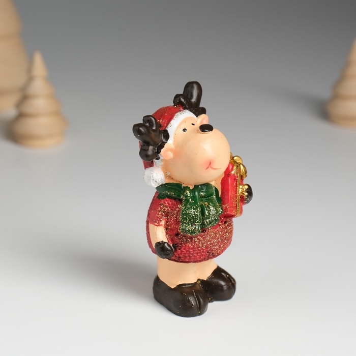 Сувенир полистоун "Оленёнок в красной шубе и зелёном шарфике" МИКС 7,5х4,2х7,5 см