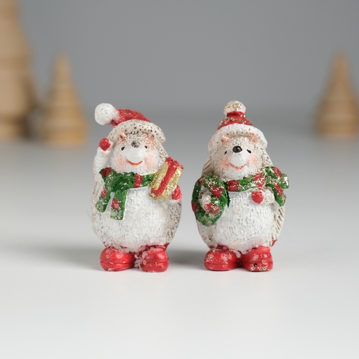 Сувенир полистоун "Ёжик в красной шапочке и валенках " МИКС 2,8х2,8х4,7 см