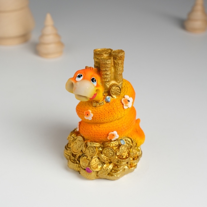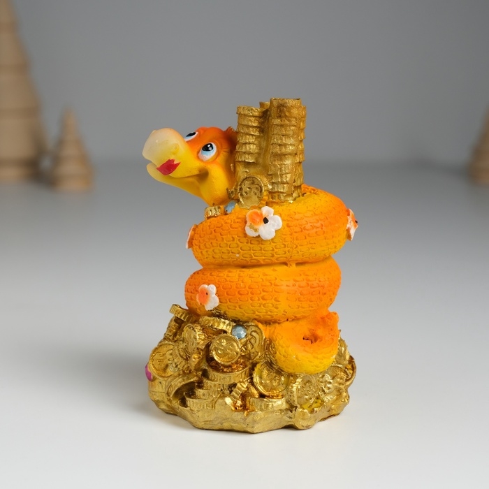 Сувенир полистоун "Змей оранжевый с цветочками на монетах" 6х5,8х8,8 см