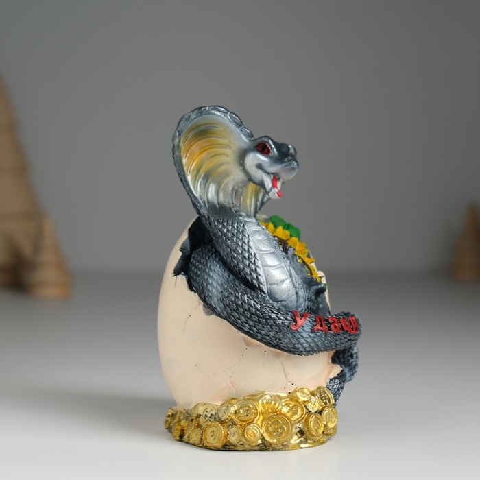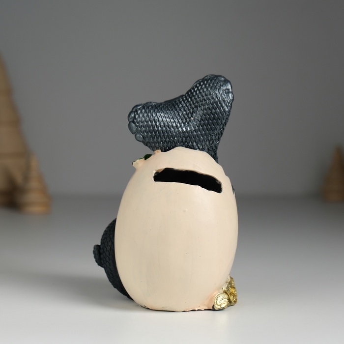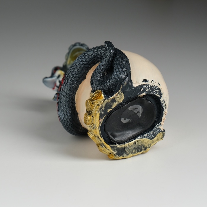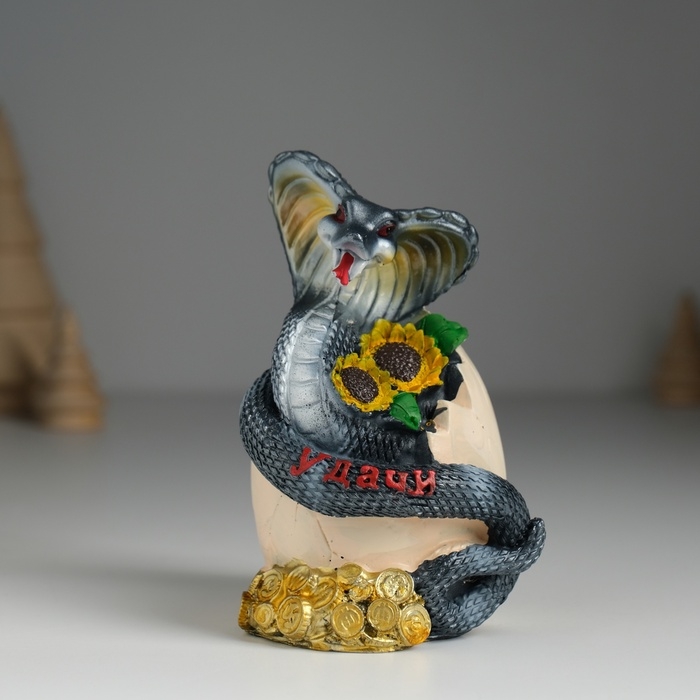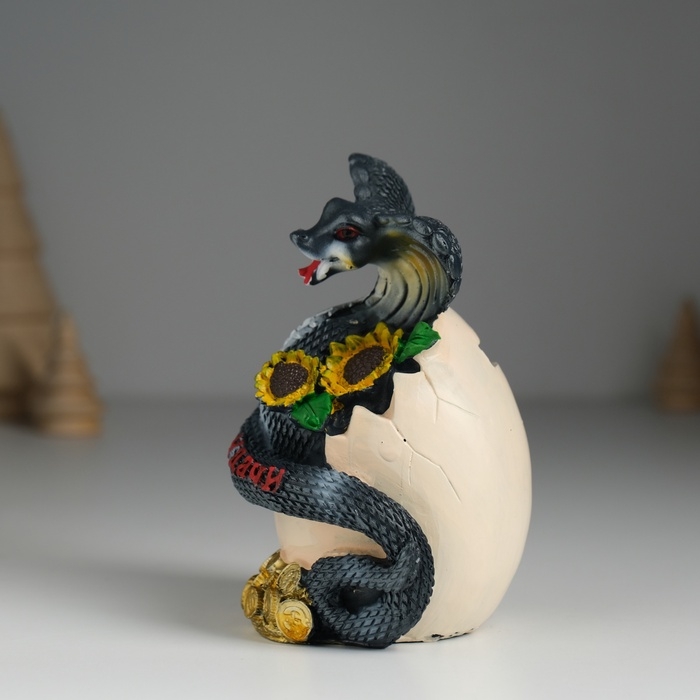 Копилка полистоун "Змея тёмная с подсолнухами и монетами" 7,2х6,5х11,2 см