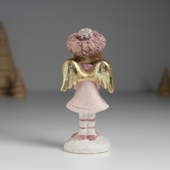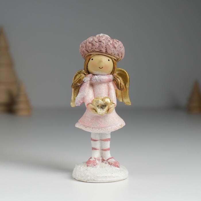 Сувенир полистоун "Ангелочек в розовом платье в розовом берете, с сердечком" 4х3,8х10 см