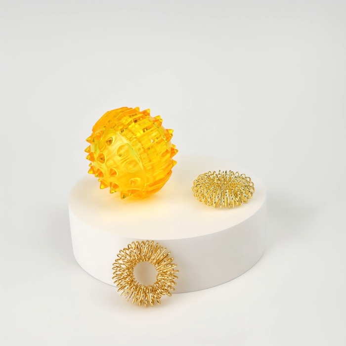 Массажер пластик универс Шарик с 2 кольцами жёлтый пакет ОТ