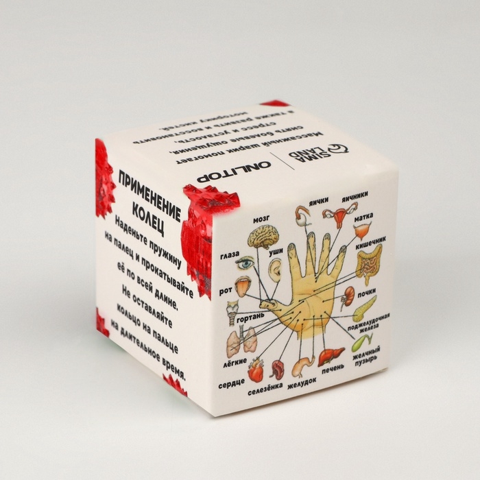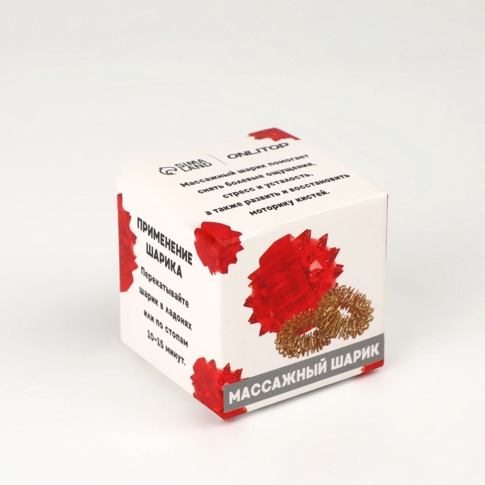 Массажер пластик универс Шарик с 2 кольцами красный коробка ОТ