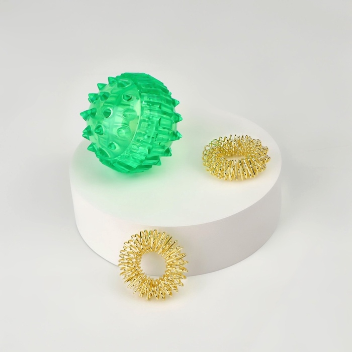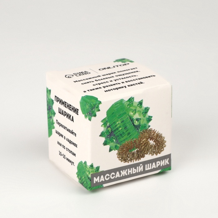 Массажер пластик универс Шарик с 2 кольцами зеленый коробка ОТ