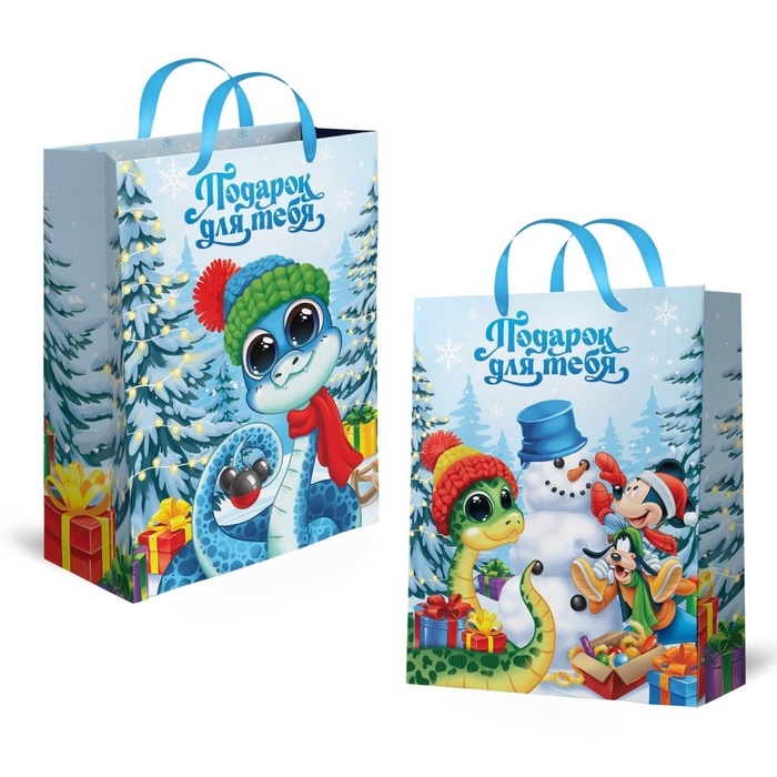 Новый год. Пакет подарочный, 31х40х11.5 см, упаковка, Микки Маус