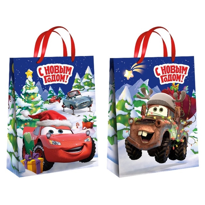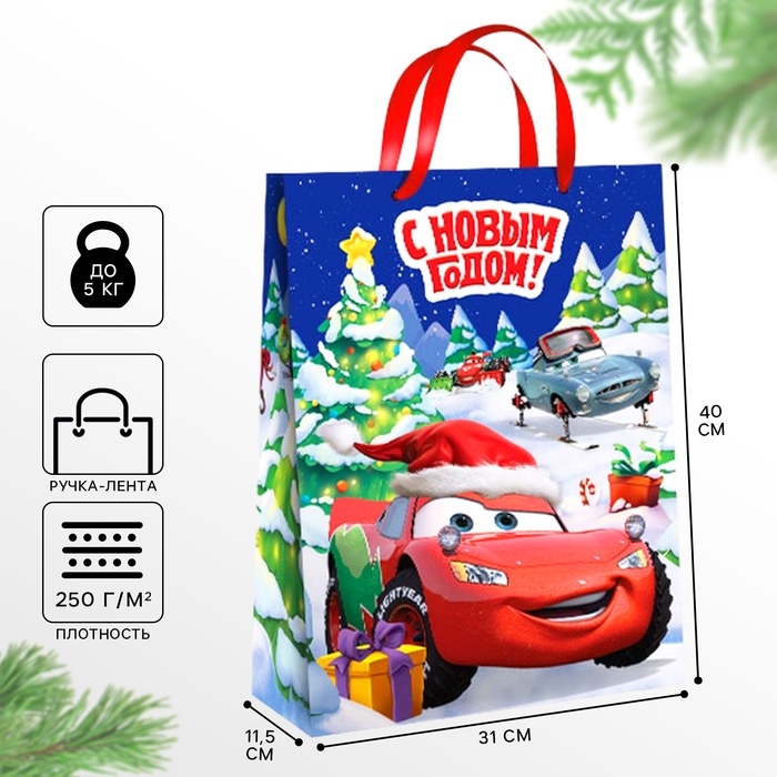 Новый год. Пакет подарочный, 31х40х11.5 см, Тачки