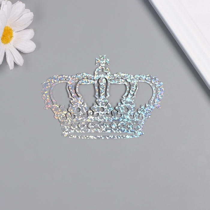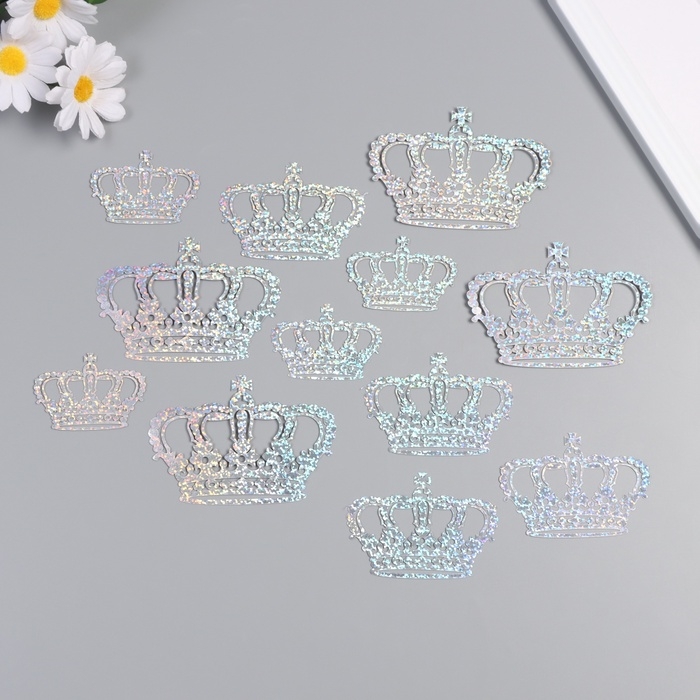 Наклейка бумага, пластик "Корона императора" голография серебро набор 12 шт 3 размера