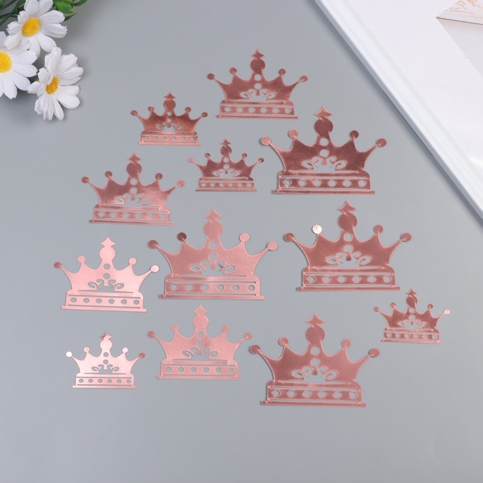 Наклейка бумага, пластик "Корона" розовый блеск набор 12 шт 3 размера