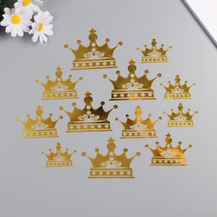 Наклейка бумага, пластик "Корона" золотой блеск набор 12 шт 3 размера