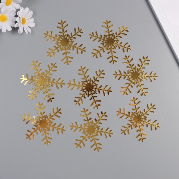 Наклейка бумага, пластик "Снежинки" золото набор 8 шт 9,5х8,5 см