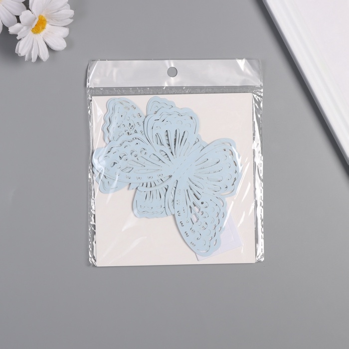 Наклейка бумага "Бабочки с узорами" матовый голубой набор 12 шт 12 см, 10 см, 8 см