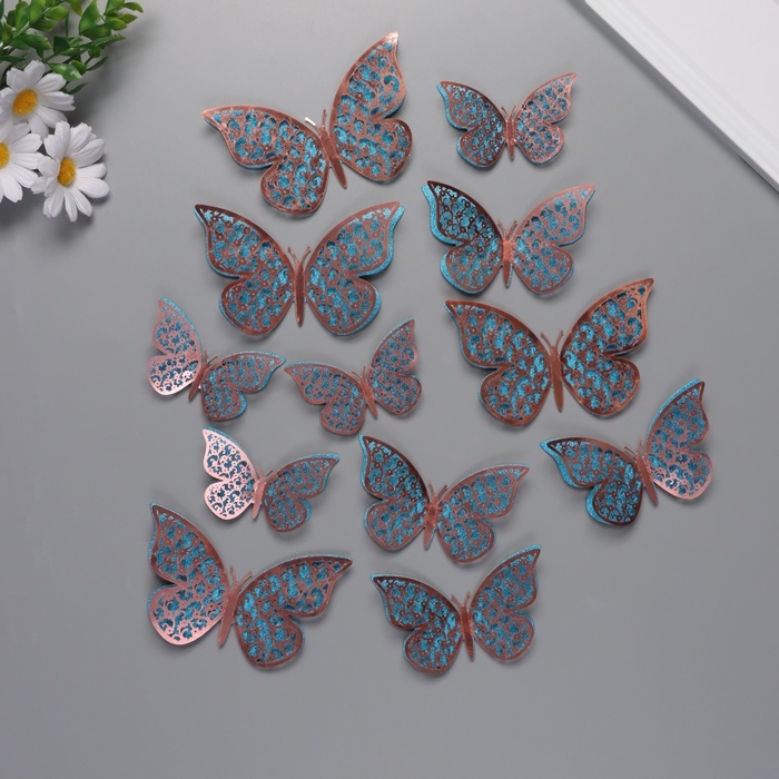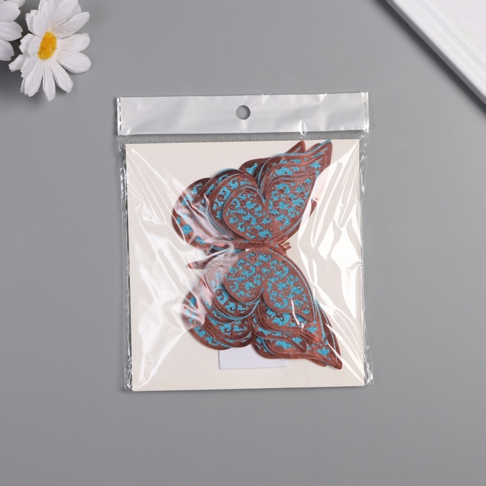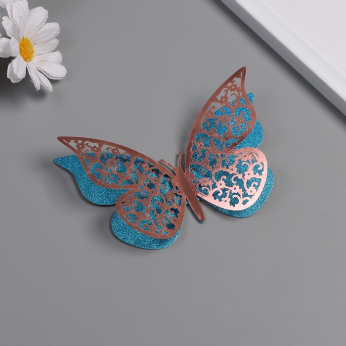 Наклейка бумага, пластик "Цветочные голубые бабочки" блёстки набор 12 шт 12 см, 10 см 8 см 1052426