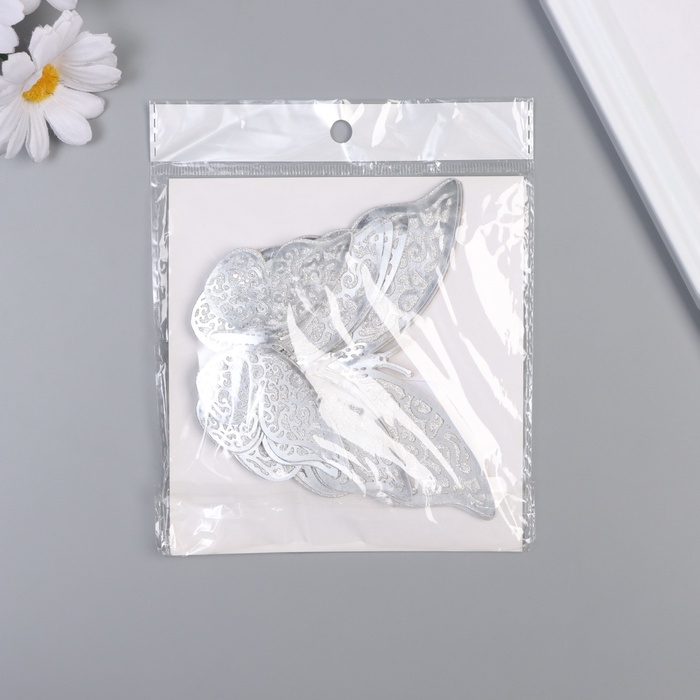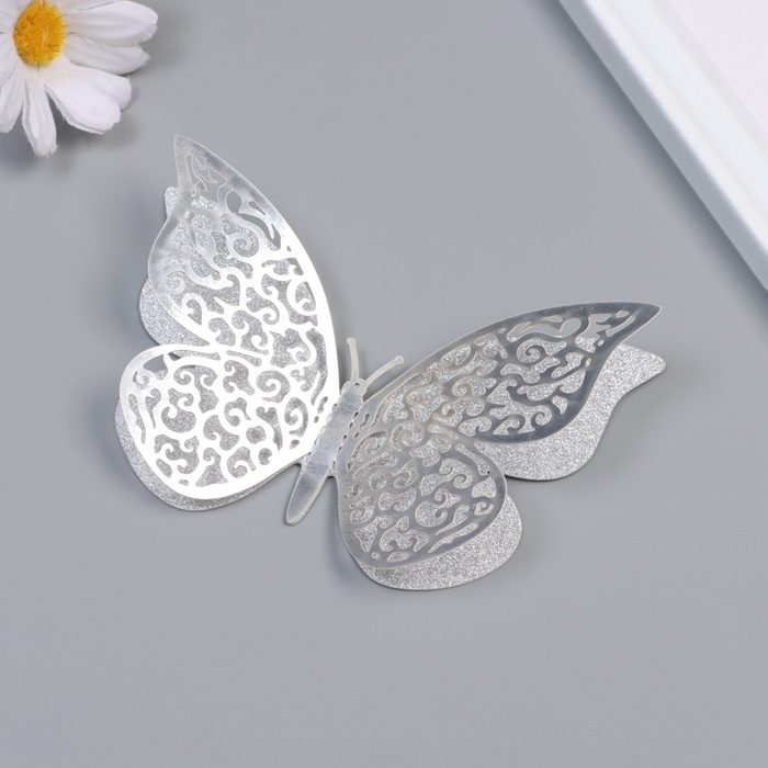 Наклейка бумага, пластик "Цветочные бабочки серебро" блёстки набор 12 шт 12 см, 10 см 8 см 1052426