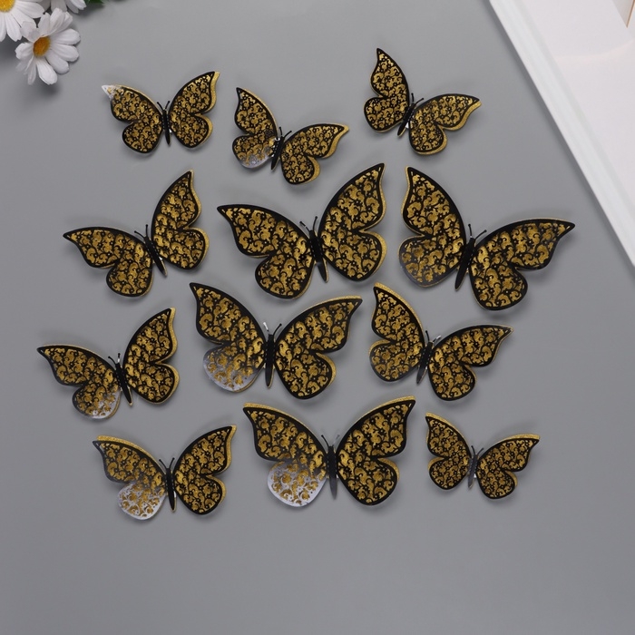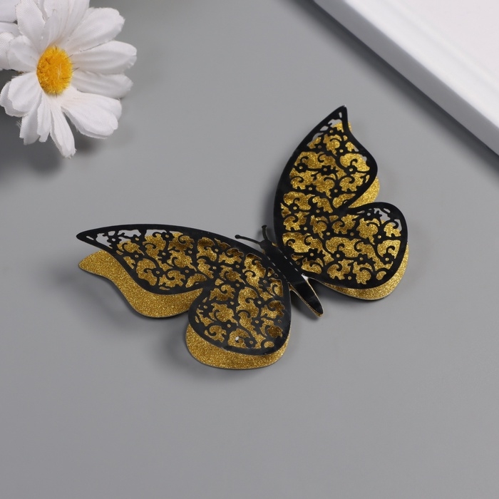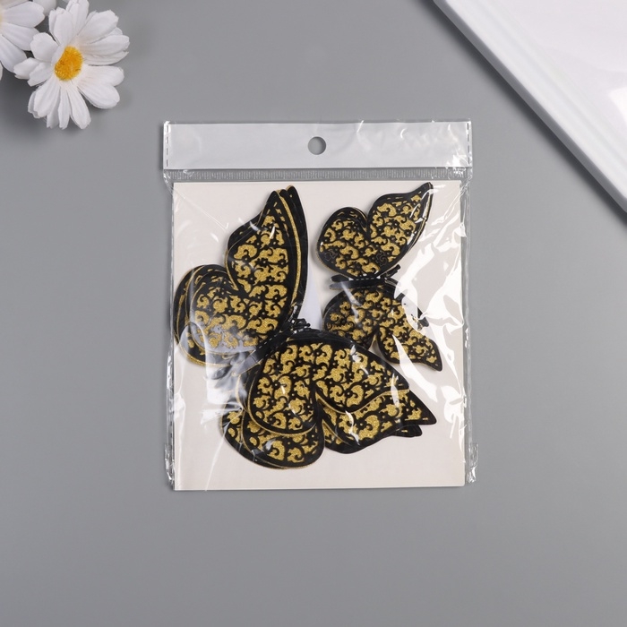 Наклейка бумага, пластик "Цветочные бабочки золото" блёстки набор 12 шт 12 см, 10 см 8 см