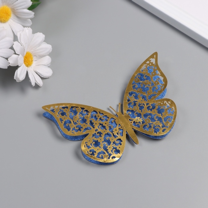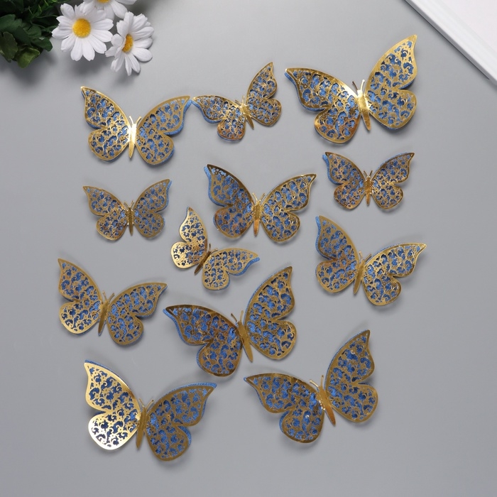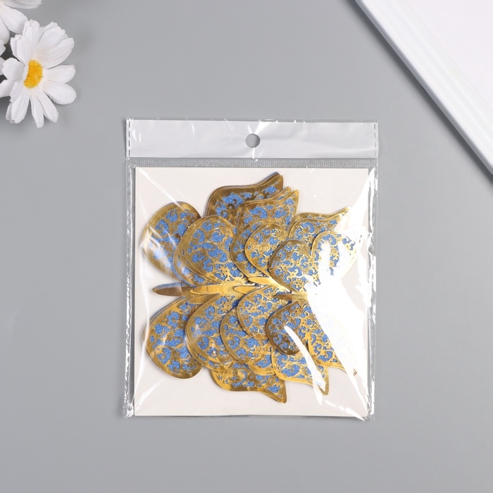 Наклейка бумага, пластик "Цветочные бабочки синие" блёстки набор 12 шт 12 см, 10 см 8 см