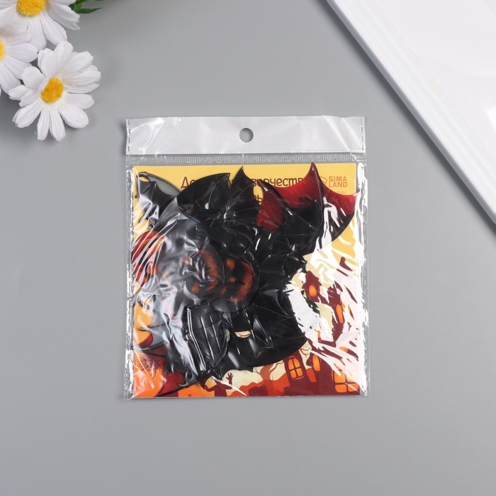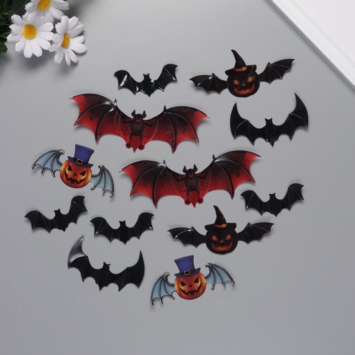 Наклейка пластик "Тыквы и летучие мыши" набор 12 шт