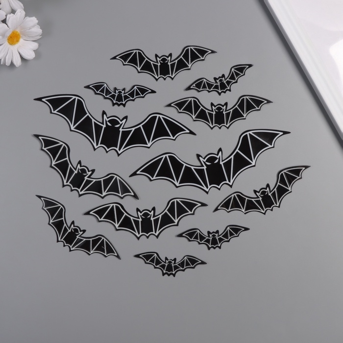 Наклейка пластик светится в темноте "Летучие мыши" набор 12 шт 3 размера