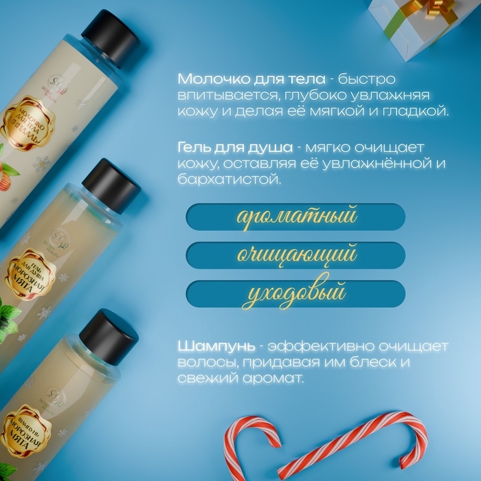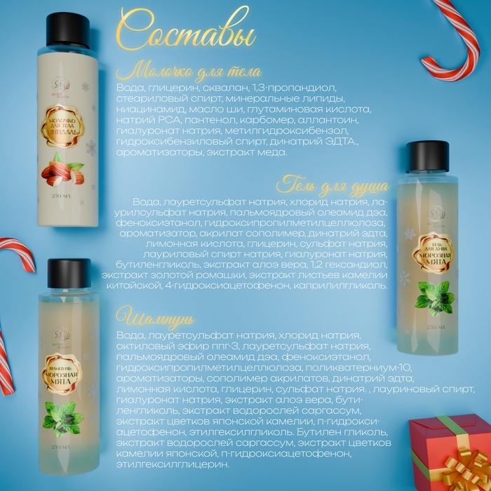 Новогодний набор — это идеальное сочетание продуктов для полноценного ухода за телом, которые дарят ощущение роскоши и заботы. Он идеально подойдёт как подарок на Новый год, который подчеркнёт ваше внимание и любовь к близким.