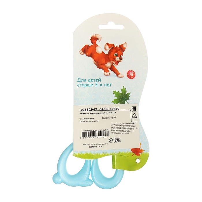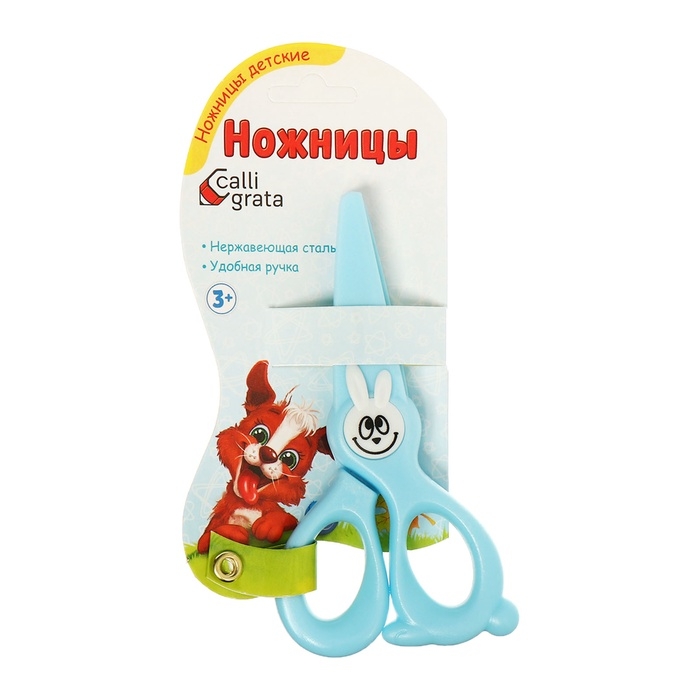 Ножницы 11,8см пластиковые ручки, закругленные концы лезвий, Зайчик синий CALLIGRATA