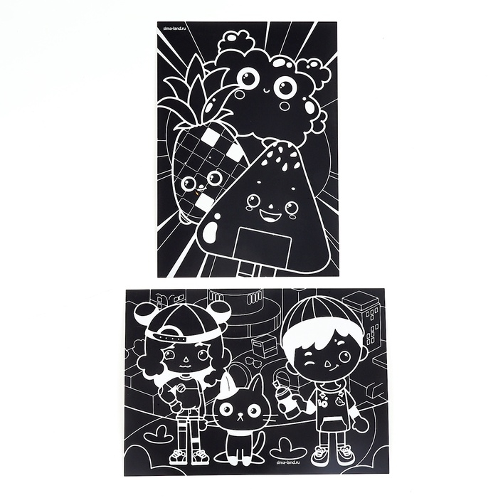 Гравюра детская «Веселье» с цветным эффектом, набор 2 шт, А6