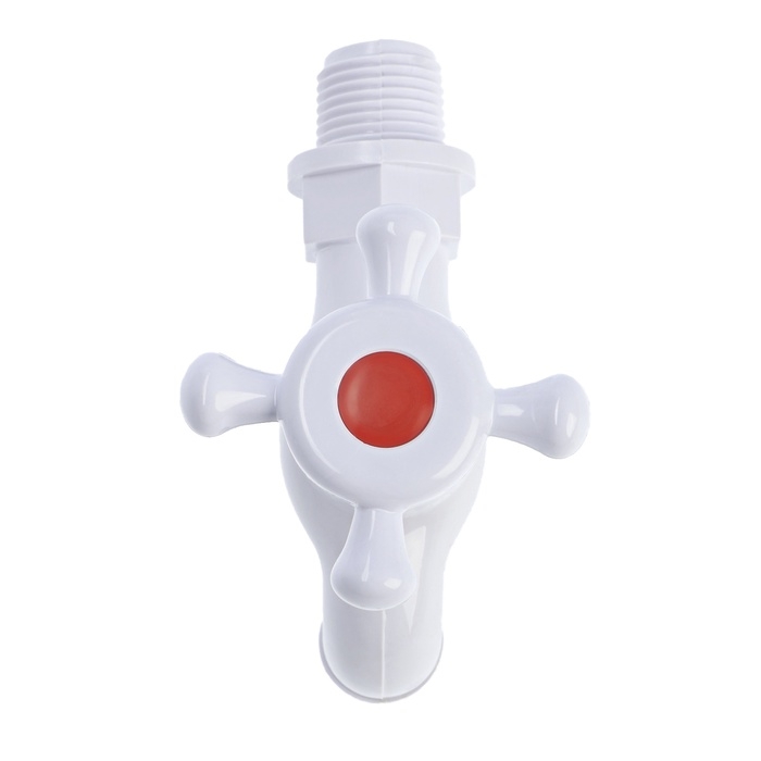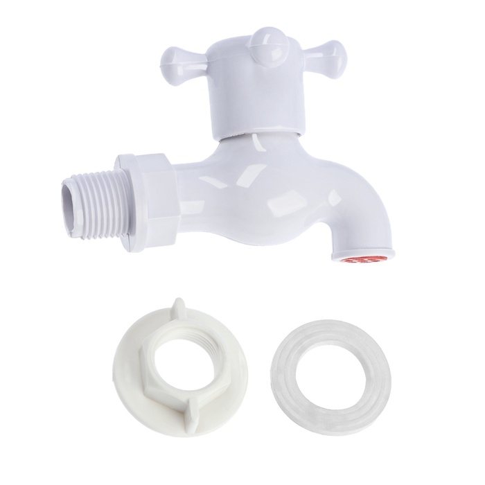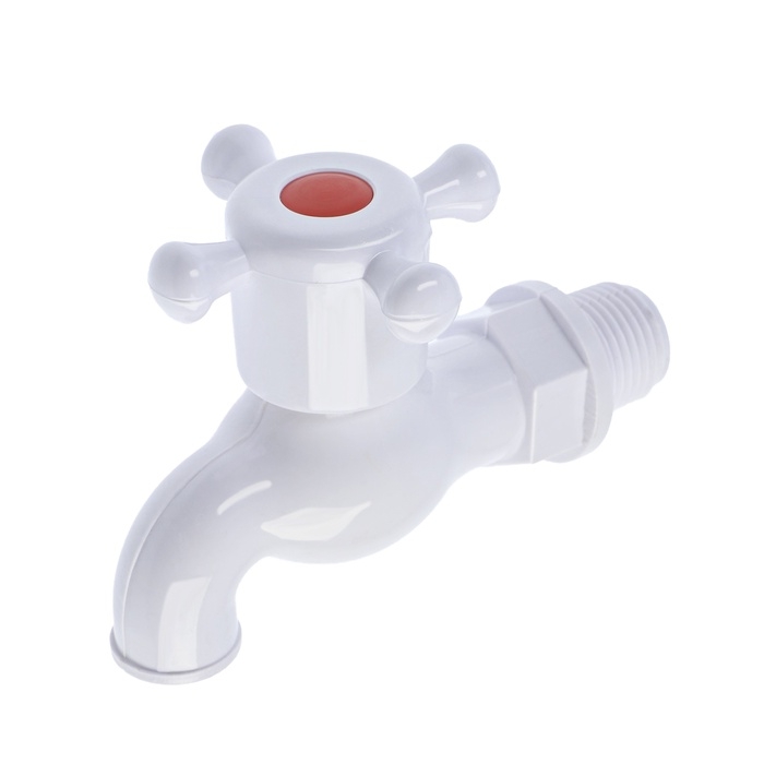 Кран водоразборный ZEIN, с крестовой ручкой, PP, с шаровым механизмом, белый, с гайкой