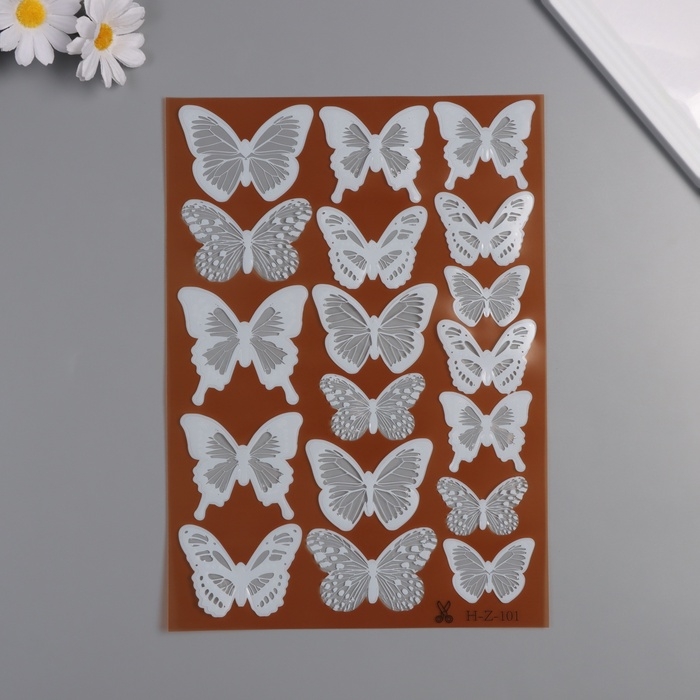 Наклейка пластик интерьерная "Бабочки полупрозрачные" белые набор 19 шт 5; 6; 7 см