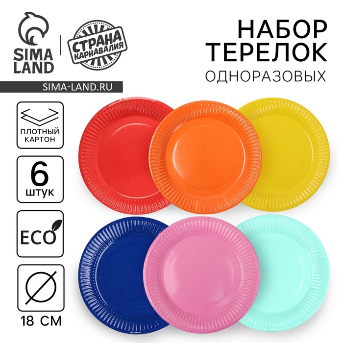 Тарелки одноразовые бумажные "Разноцвет", набор 6 штук