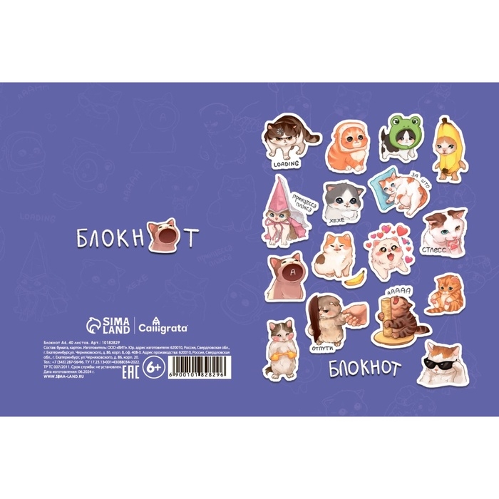 Блокнот А6, 40 листов в клетку "Бультик", твёрдая обложка, глянцевая ламинация, блок офсет