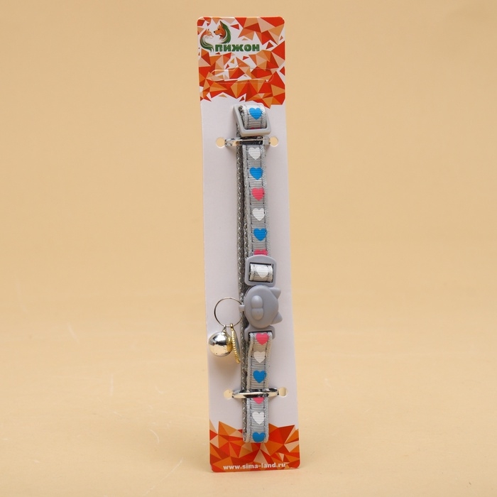 Ошейник кошачий "Нежная нежность", с бубенчиком и подвесом, 30 х 1 см, полиэстер, серый