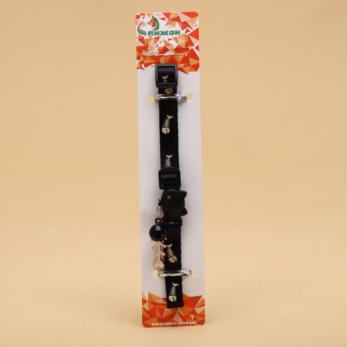 Ошейник кошачий "Рыбёшка" светящийся, с бубенчиком и подвесом, 30 х 1 см, полиэстер, черный 106710