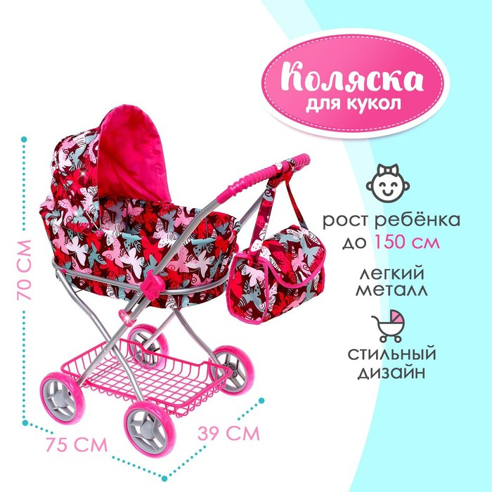 Коляска для кукол, универсальная, с корзиной, с сумкой
