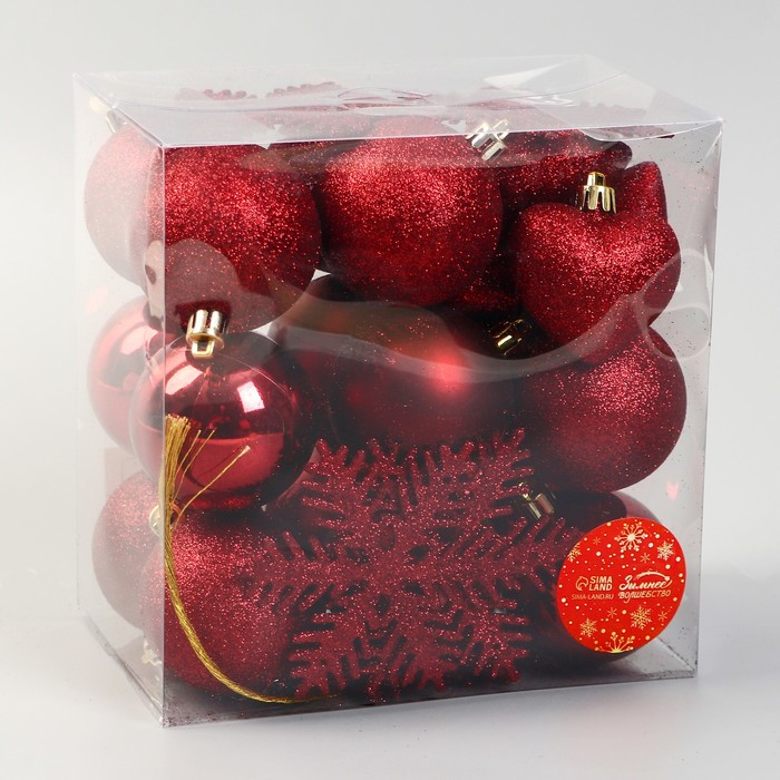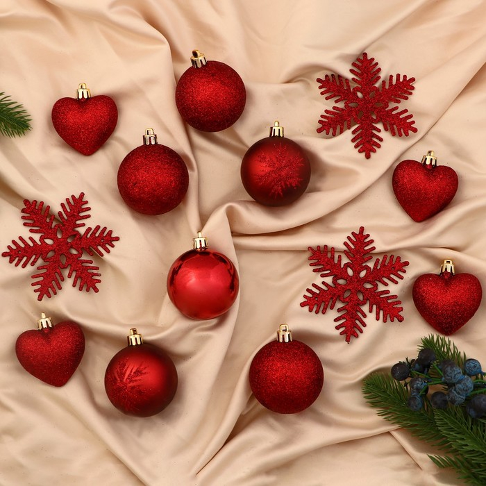 Набор украшений пластик 30 шт "Амур" (16 шаров, 6 сердец, 8 снежинок) красный