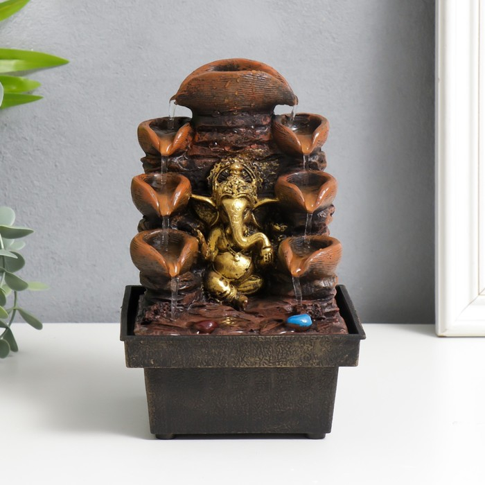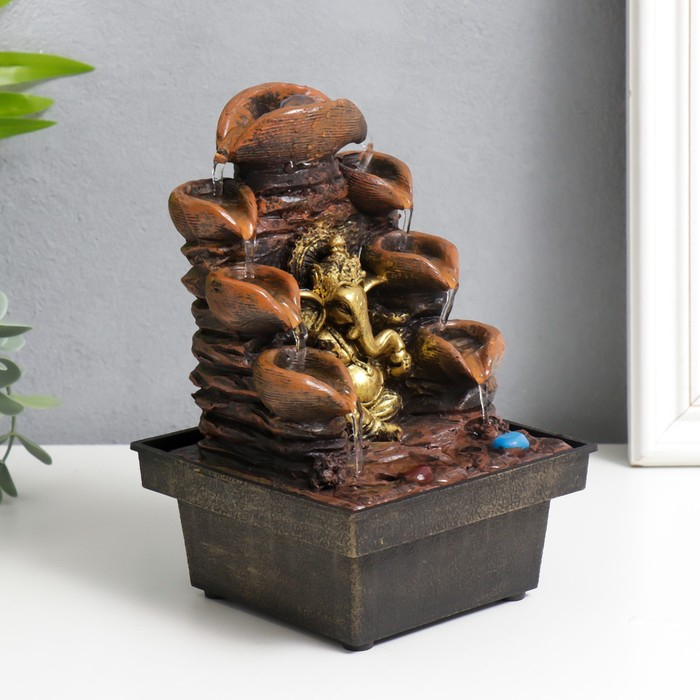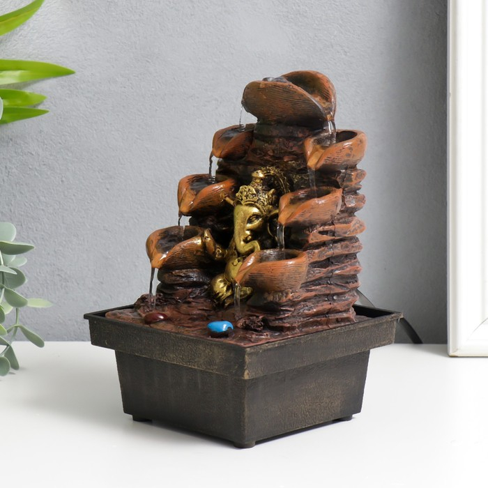 Фонтан настольный от сети "Ганеша у скалы с водопадом" 18х12х12 см