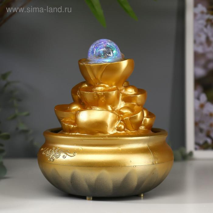 Фонтан настольный от сети, подсветка "Гора золотых слитков" 18,5х15х15 см