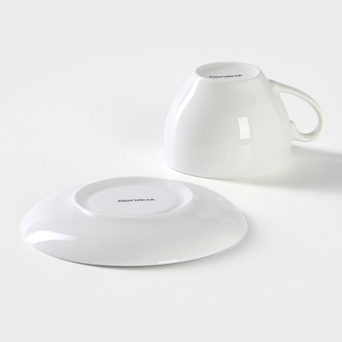 Чайная пара фарфоровая Magistro «Бланш», 2 предмета: чашка 250 мл, блюдце d=15,5 см, цвет белый