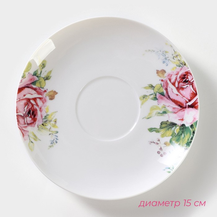 Чайная пара фарфоровая Magistro Rodos, 2 предмета: чашка 220 мл, блюдце d=15 см, цвет белый