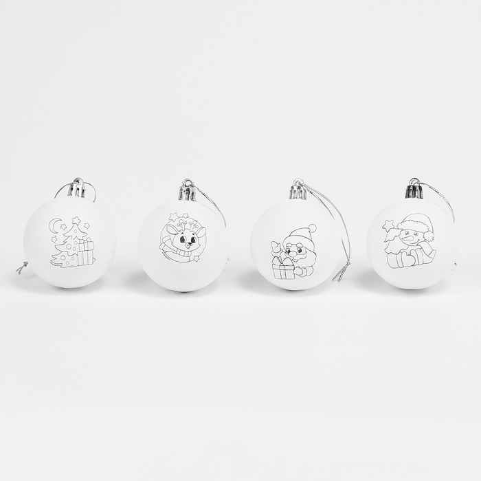 Новогодний набор для творчества. Ёлочные шары под раскраску «Счастливый Новый год», 4 шт, d=5.5 см