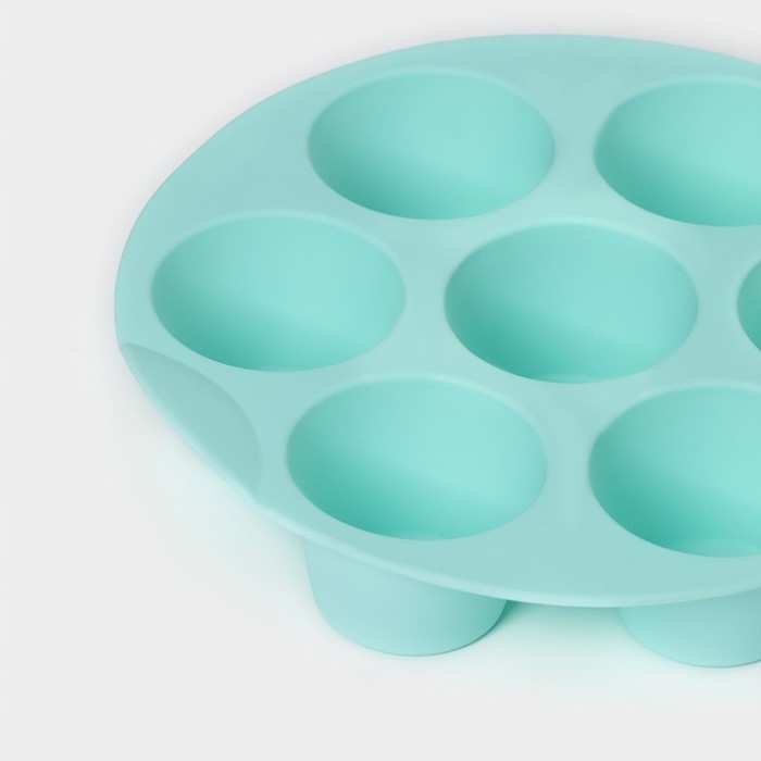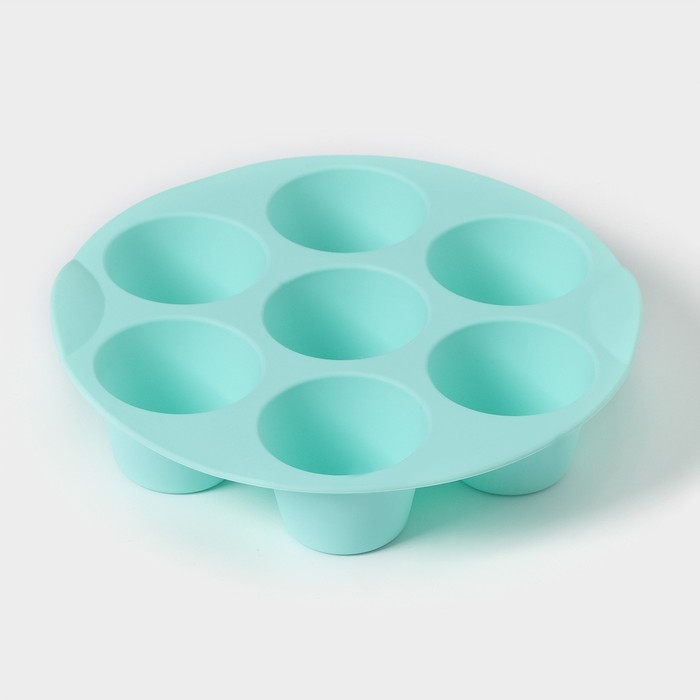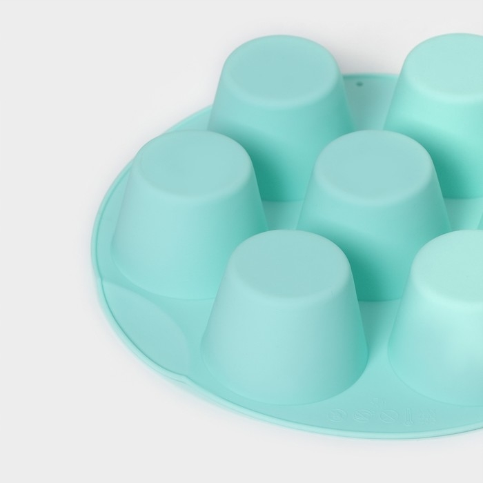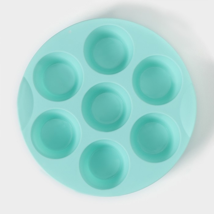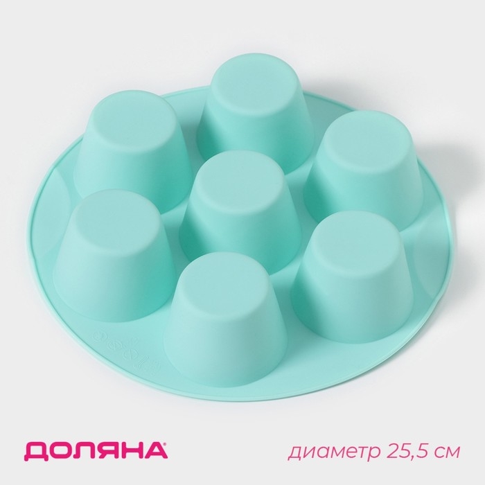 Форма для выпечки Доляна «Круг», силикон, d=25,5 см, 7 ячеек (6×4 см), бирюзовая