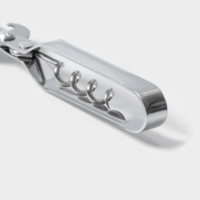 Открывашка - штопор Доляна «Помощник», 14 см, цвет серебристый