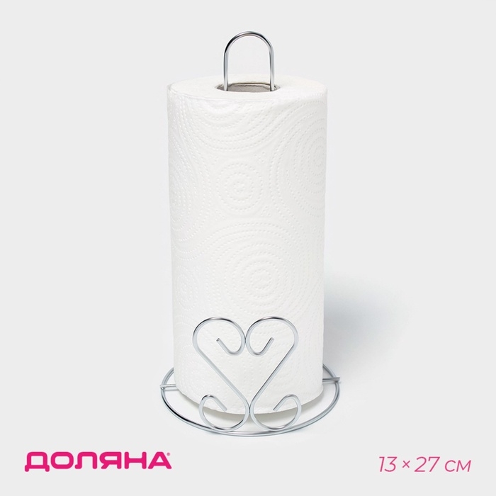 Держатель для бумажных полотенец Доляна «Сердце», 13×13×27 см, цвет хром