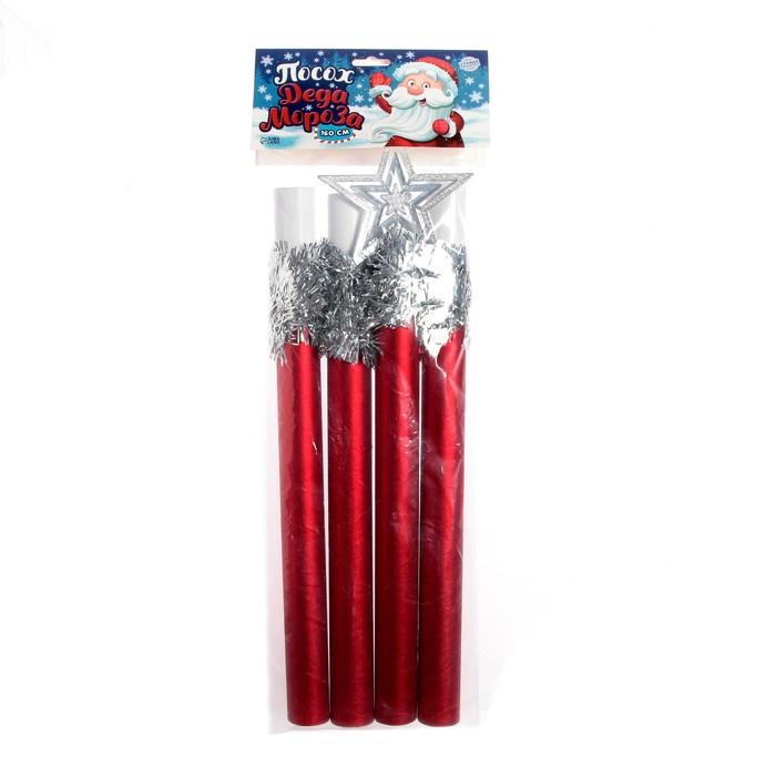 Карнавальный посох Деда Мороза представлен в трёх цветах: красном, синем и золотом.