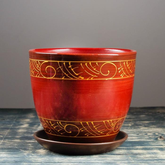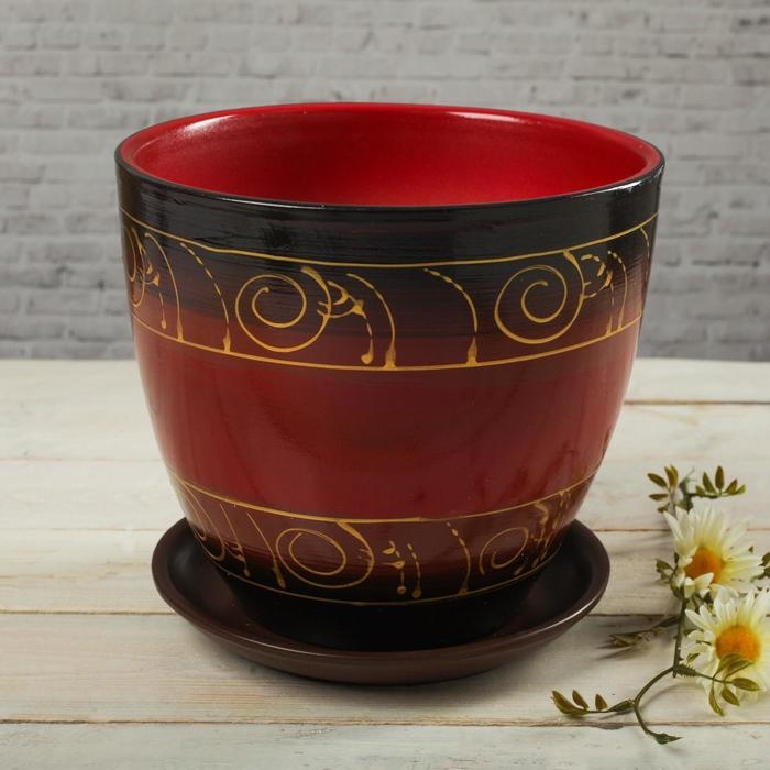 Горшок цветочный Сувенир 5л с поддоном, МИКС