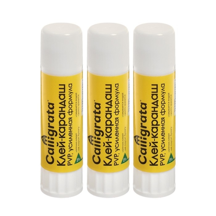 Клей-карандаш 21 грамм PVP усиленная формула, набор 3 шт