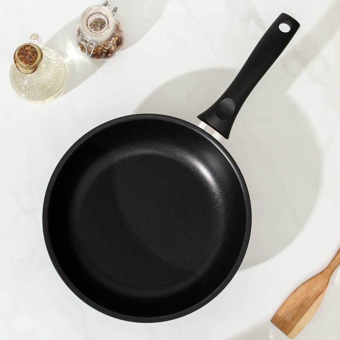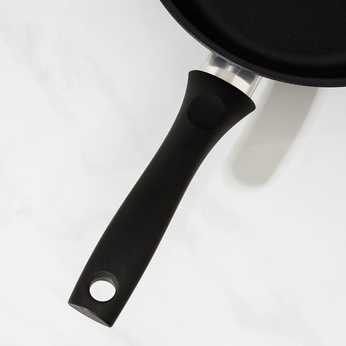Сковорода «Традиция», d=24 см, пластиковая ручка, стеклянная крышка, антипригарное покрытие, цвет чёрный