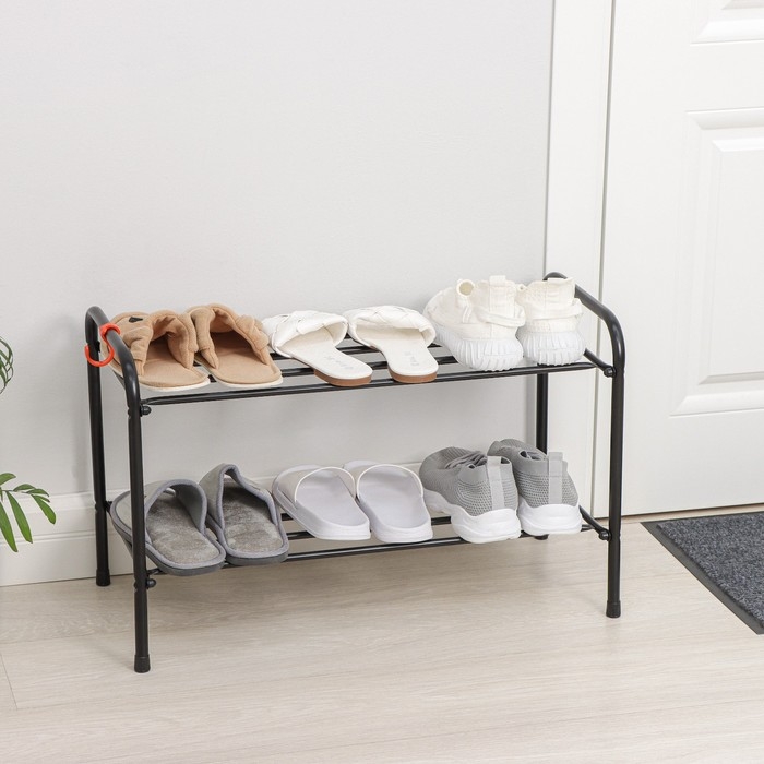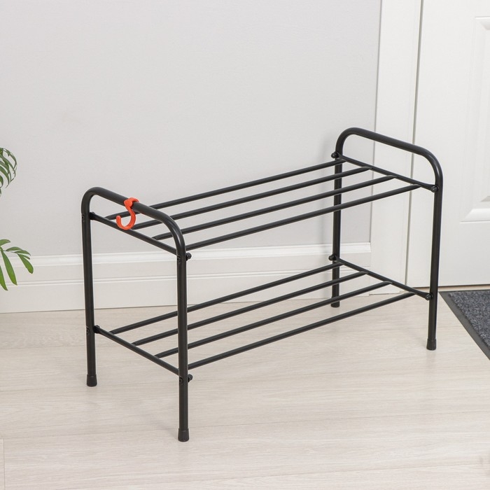 Подставка для обуви, 2 яруса, 65×30×40 см, цвет чёрный