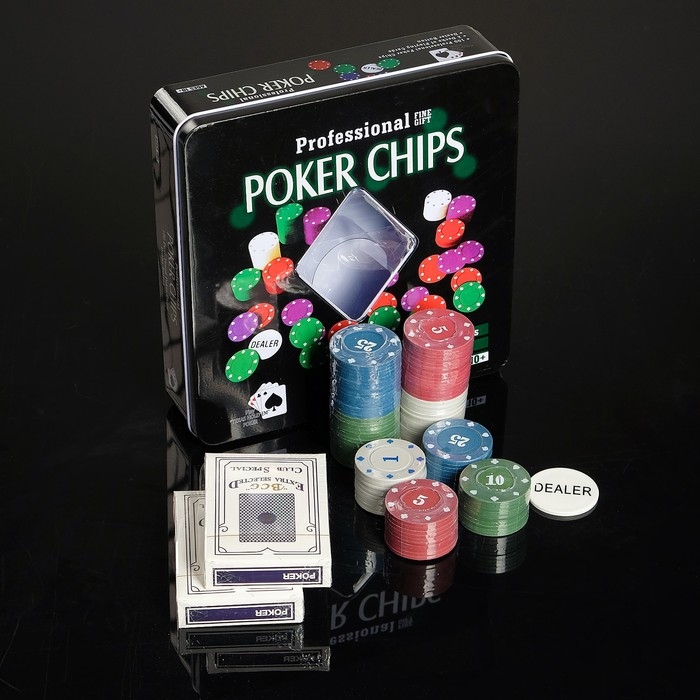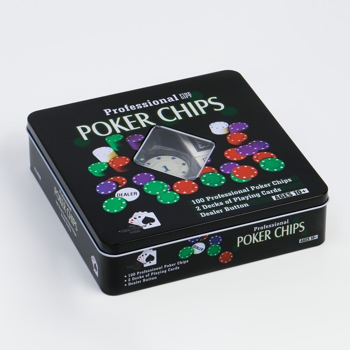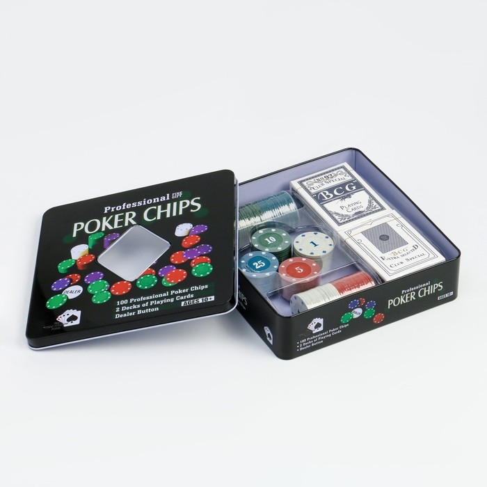 Покер, набор для игры (карты 2 колоды, фишки 100 шт.), с номиналом, 20 х 20 см