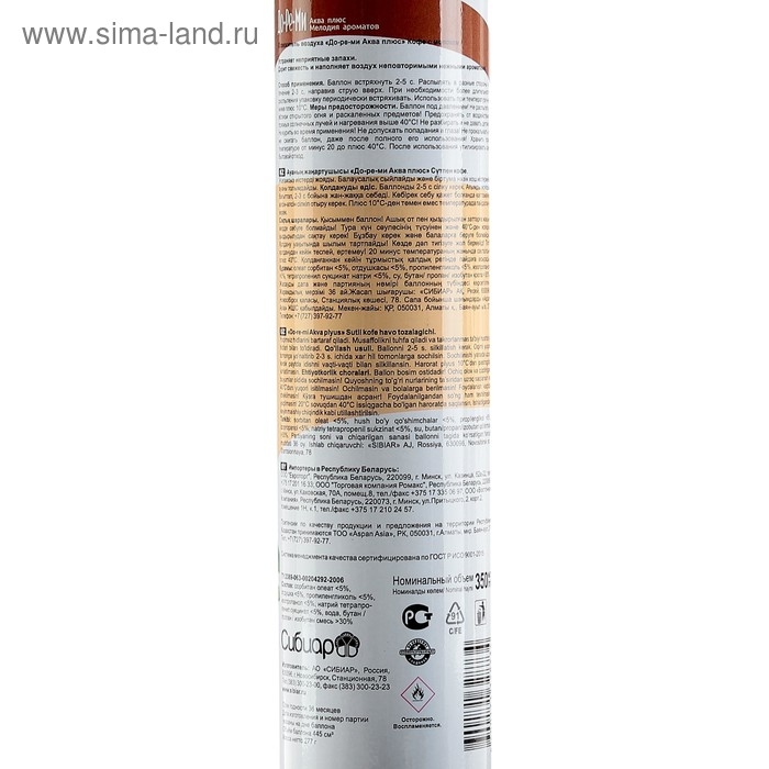 Способ применения: баллон встряхнуть в течение 2-3 сек. Направляя распылитель вверх, равномерно распылить средство в помещении.