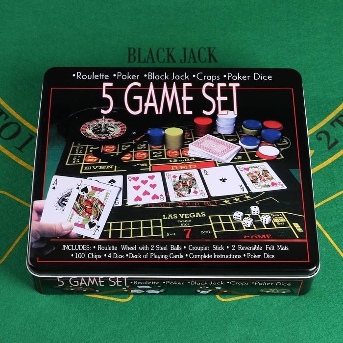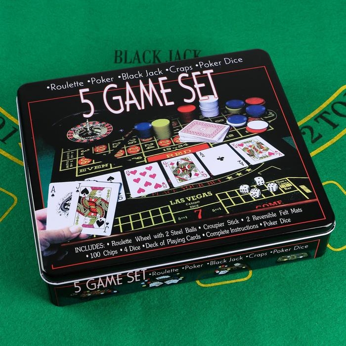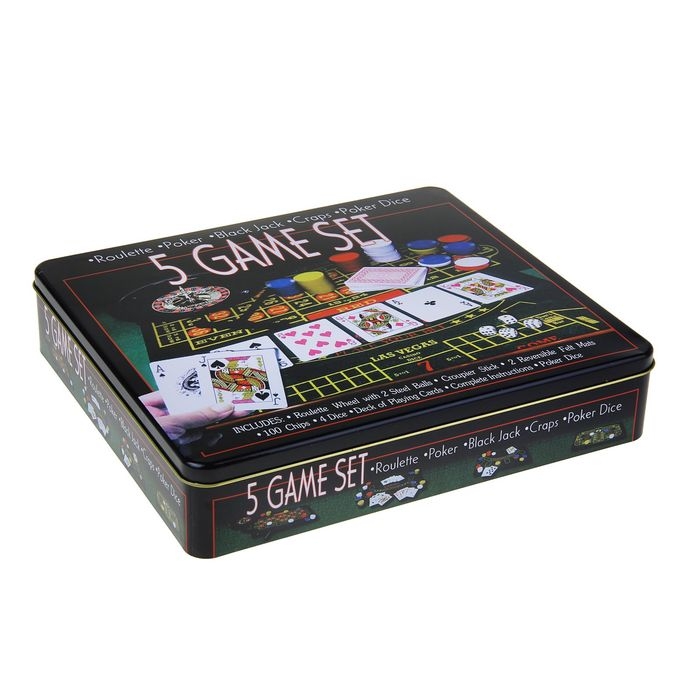 Набор для покера - отличный способ разнообразить свой досуг. В комплект входит рулетка, колода из 54 карт, фишки разного номинала, игральные кости и игровое поле. Рулетка и карты выполнены из качественного материала, что обеспечивает долгий срок службы. Фишки с номиналами от 1 до 100 помогут вам следить за счетом во время игры. Игровое поле удобного размера позволяет разместить его на любом столе, а игральные кости стандартных граней подходят для различных игр.